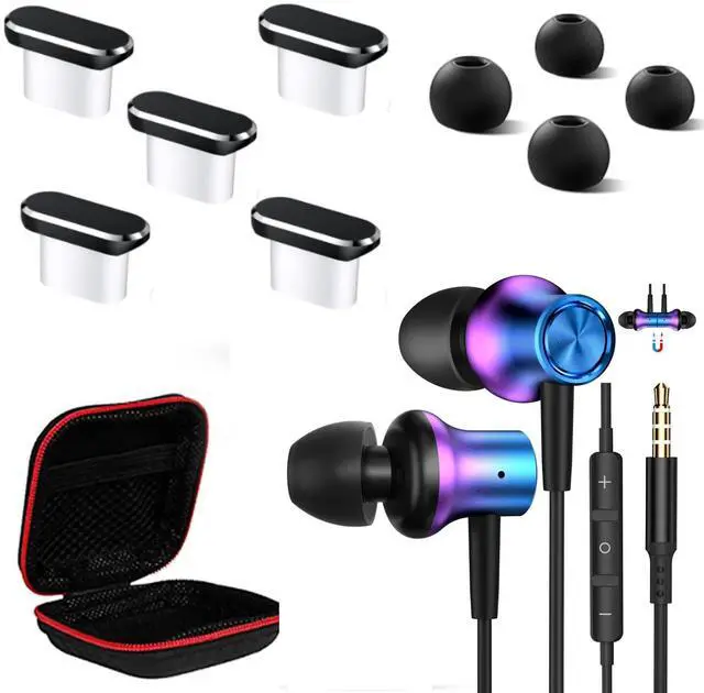 AFGHOA 5 Pack USB C Anti Dust Plug and 3.5mm Jack Earbuds Dazzle Magnetic Wired Earphones