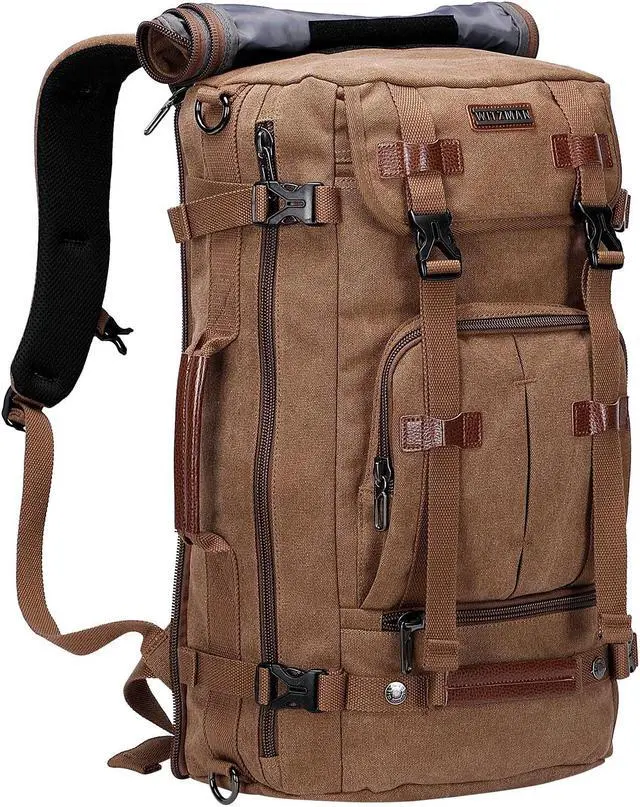 WITZMAN Canvas Backpack Vintage Travel Backpack Large Laptop Bags Convertible Shoulder Rucksack and Sling Bag Convertible Sling Backpack