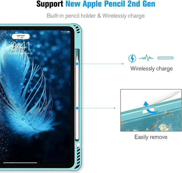 Supports 2nd Gen pencil magnetic and wireless charging when case is on. Built-in Pencil holder securely carries and protects your pencil 2nd Gen wherever you go. Built-in magnetic strip provides sleep / wake feature, automatically wakes or puts your device to sleep.