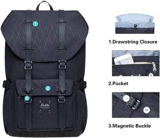 MATERIAL:This backpack is made of high-quality polyester.Which is a fabric with a bit of stretch.A new update and design of the fabric, the dark print design makes your backpack look low-key and elegant.