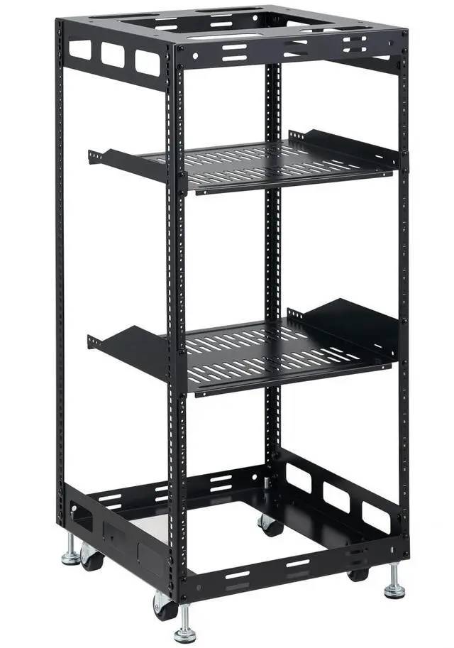 Tedgetal 20U Open Frame Rack for Servers & AV Gear - Wall Mountable Design Includes 2X Vented Shelves, 4X Leveling Feet, 4X Casters