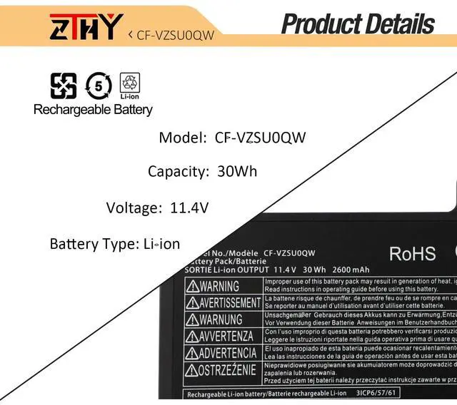 Compatible Part Number: CF-VZSU0QW CF-VZSU0QJS CF-VZSU0QK CF-VZSU0QQ CF-VZSU0QR CF-VZSU0QW-4
