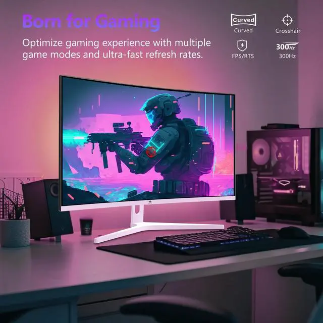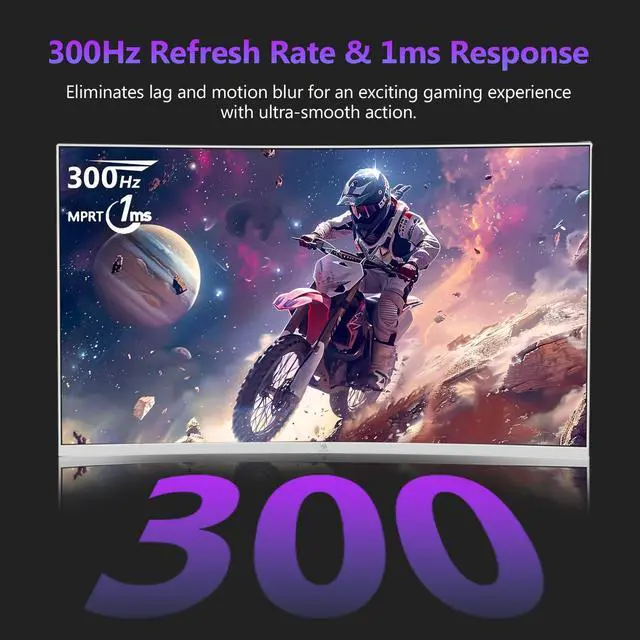 300Hz Curved Gaming Monitor: Elevate your competitive edge with an ultra-fast 300Hz refresh rate, delivering smooth, tear-free gameplay perfect for e-sports and high-speed action. Enjoy swift visuals that keep you locked in every moment, ensuring you stay one step ahead of the competition.From competitive shooters to cinematic RPGs, this monitor is designed to handle it allproviding fluid motion, vivid visuals, and a truly immersive gaming environment that sets the stage for your next victory.