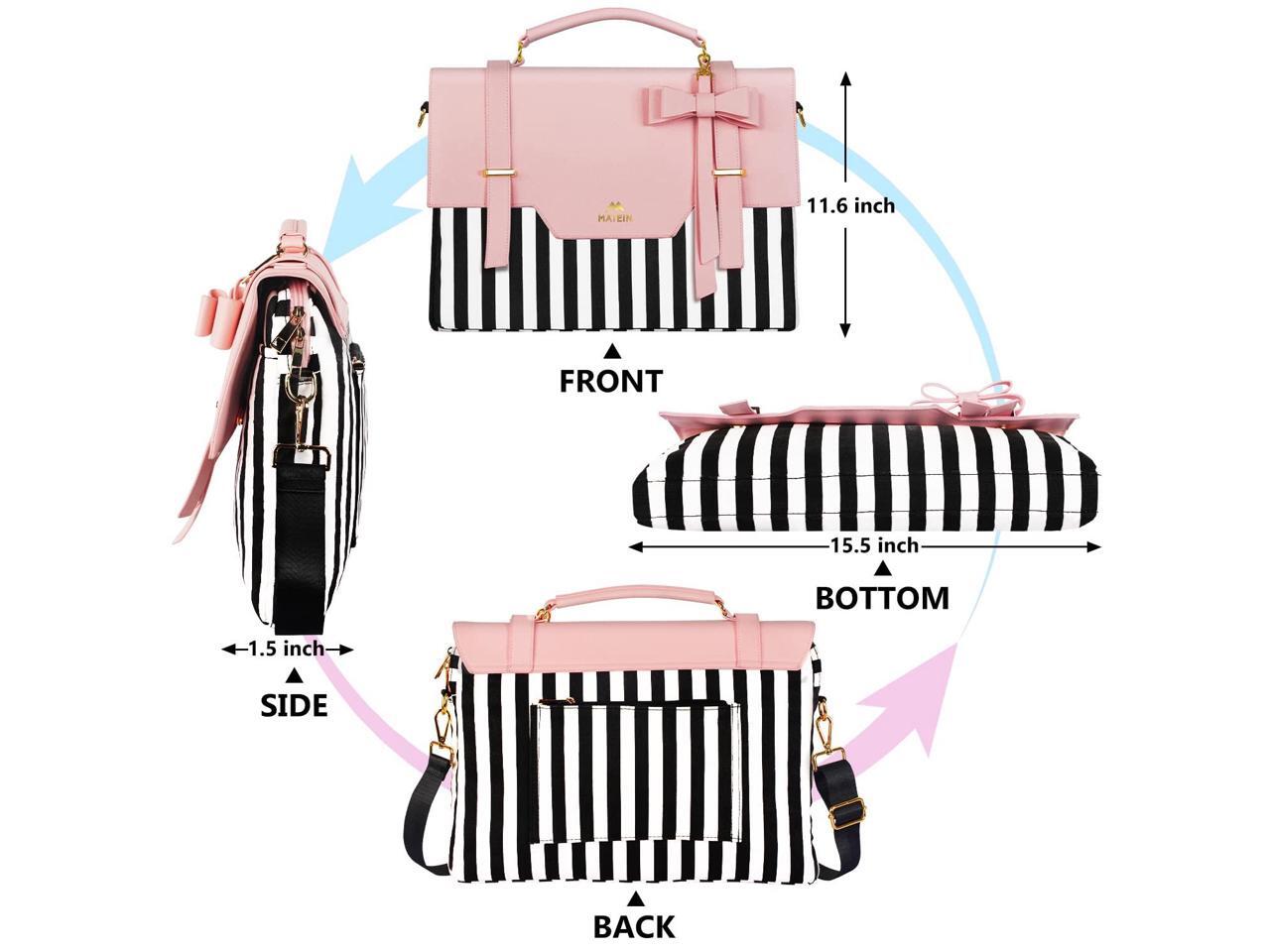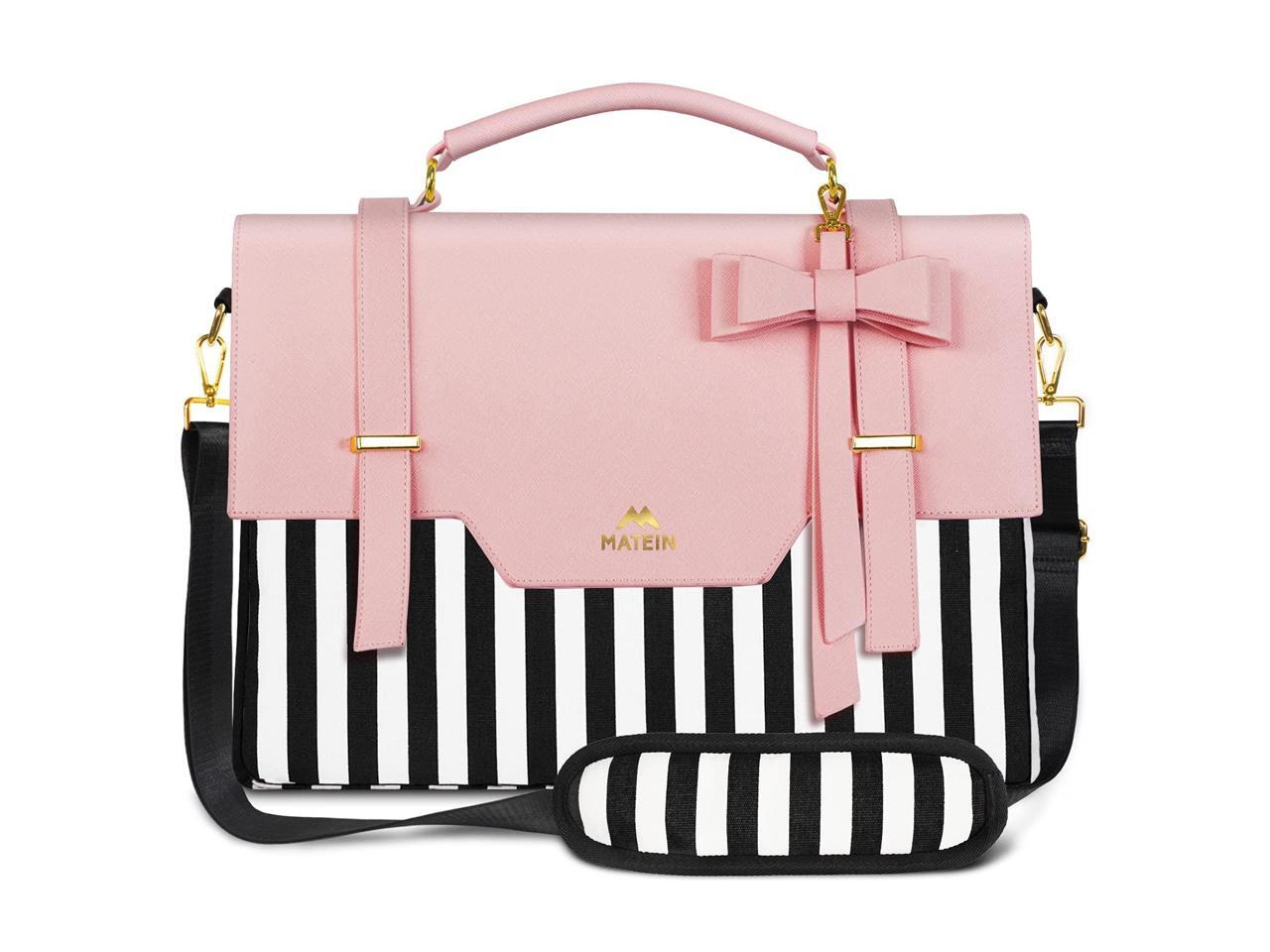 - Protective Paded & Shockproof: 15.6 inch stylish laptop messenger bag for school with thick sponge paded is design for enhanced device protection. Crossbody bags for teen girls provides comfortable and adjustable shoulder strap varied maximum 58 inches in several ways as slim briefcase bag or cute laptop carrying bag. Pink faux leather stand out cute bags for teen girls with bold stripes and pink or black contrasting cloth fabric, quirky laptop briefcase helps to inject fun in your workday ^