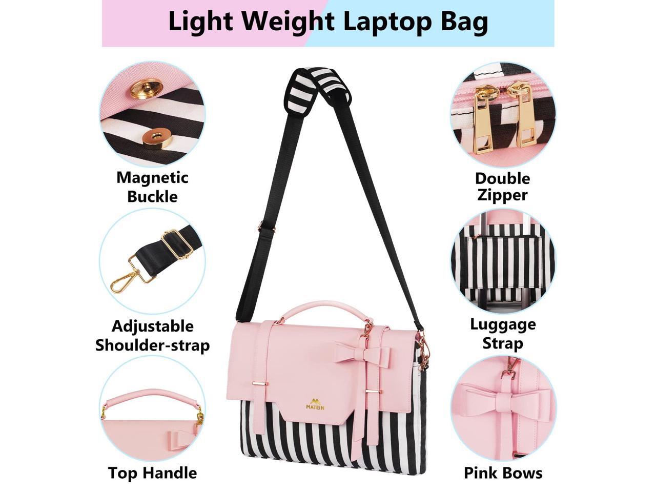 - Storage Organized & Lightweight: Dimension of women's cute laptop bag: 15.7*1.8*11.7 inch. (Please check your laptop's size) Lightweight computer bag is convenient for women to carry without increasing the burden of commuting. Main laptop compartment of computer briefcase bag with zipper for under 15.6,15,14inch notebook inside.The front multi-function pocket of pink laptop carrying sleeve case with magic tape has pen holders and pockets for documents, mouse pad, power bank, headphones