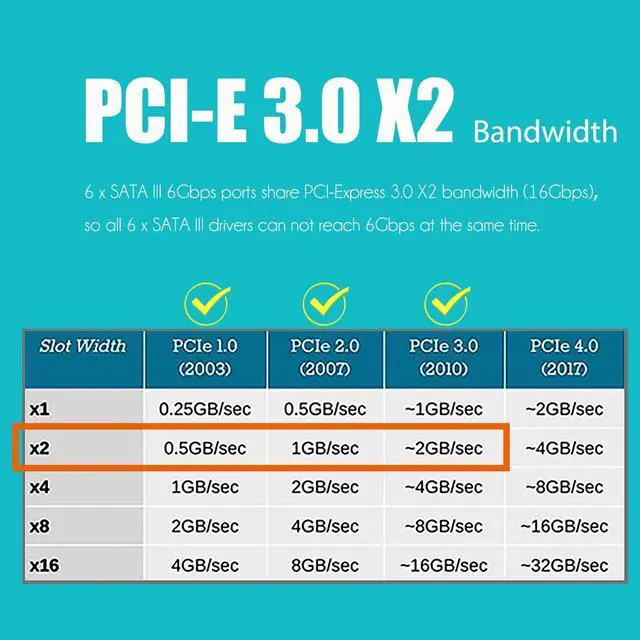 Swift Data Transfer: Powered by ASM1166, it has a PCI - Express 3.0 X2 upstream speed of 16GT/s. Each of the 6 downstream SATA ports can reach 277MB/s max bandwidth, ensuring fast and stable data transfer for your storage needs.