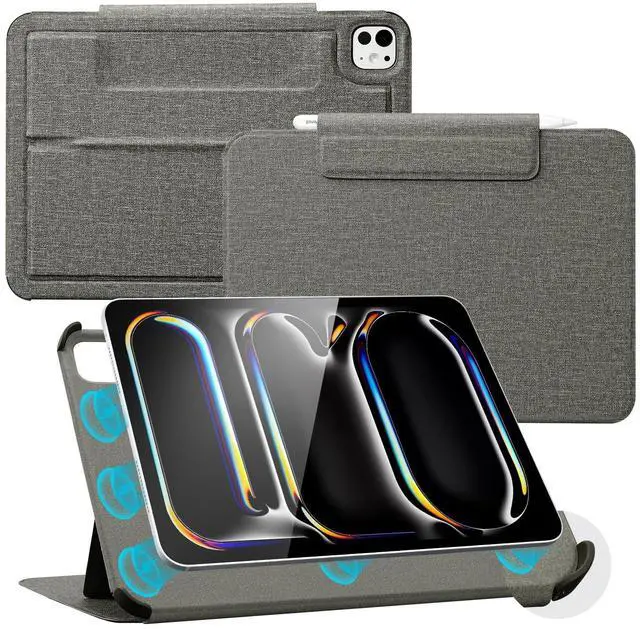 CoBak Magnetic Case with Stand for iPad Pro 11 Inch (M4) 2024, Multiple Viewing Angles, Smart Auto Sleep/Wake Cover with Corner Protection with Apple Pencil Holder Strap, Graphite Fabric