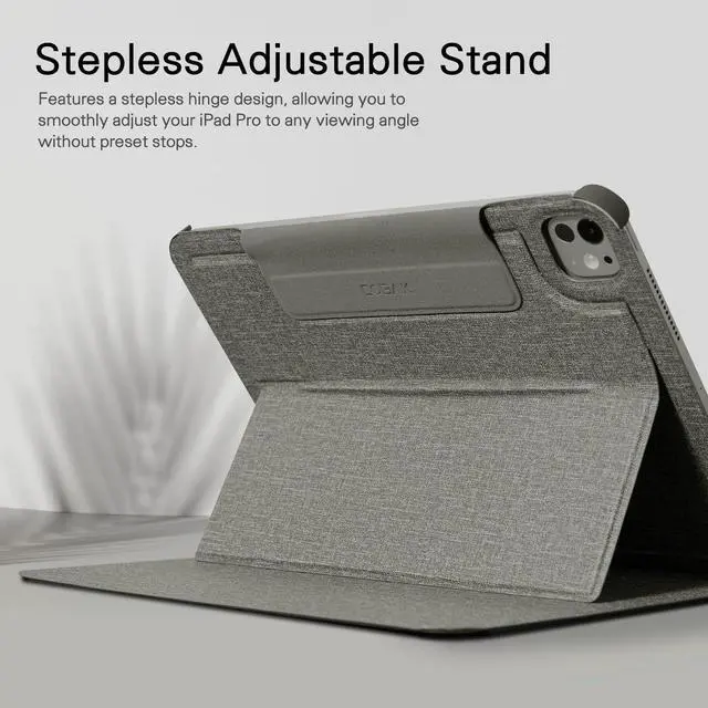 Stepless Adjustable Stand: Features a stepless hinge design, allowing you to smoothly adjust your iPad Pro 11 to any viewing angle without preset stops. Enjoy seamless, flexible positioning for drawing, typing, watching videos, or video calls