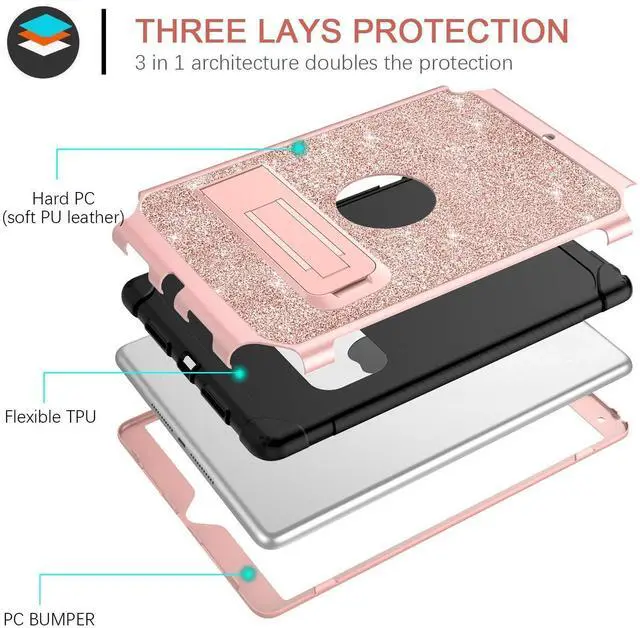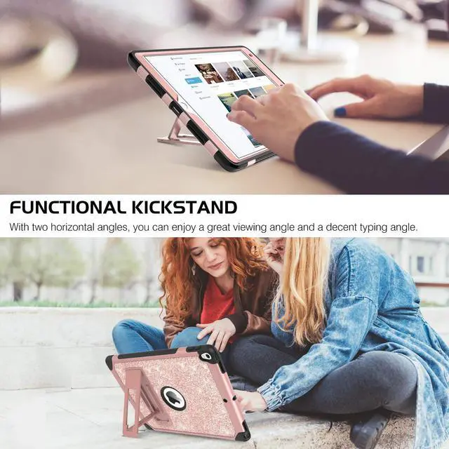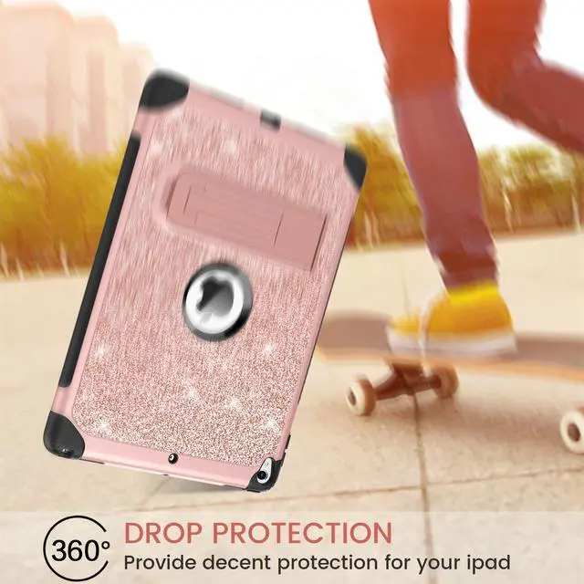 BENTOBEN for iPad Air (3rd Gen) 10.5" 2019 Case, iPad Pro 10.5" 2017 Case,Glitter Sparkly 3 Layers Heavy duty Shockproof Protective Hybrid Hard PC TPU Bumper Kickstand Kids iPad Air 3 Cover, Rose Gold
