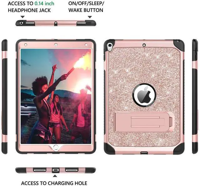 BENTOBEN for iPad Air (3rd Gen) 10.5" 2019 Case, iPad Pro 10.5" 2017 Case, Glitter Sparkly 3 Layers Heavy duty Shockproof Protective Hybrid Hard PC TPU Bumper Kickstand Kids iPad Air 3 Cover, Rose Gold