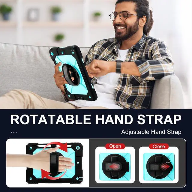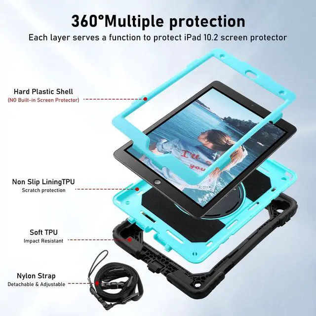 Cute Key Chain &Portable Shoulder Strap Case for iPad 9th/8th/7th generation comes with a cute key chain and adjustable shoulder strap for easy carrying and secure quick grabbing, freeing your hands while youre on the go. Ideal for different careers or outdoor activities. Attach the strap to any two corner holes of this iPad 10.2 case . Carry your iPad conveniently wherever you are at home, at work,or outdoor. You can also hang it behind the headrest of the car seat for shared viewing.