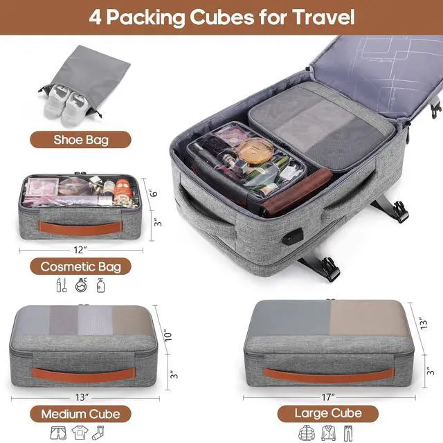 Winilla Travel Backpack, 17Inch Laptop Backpack, Carry-on Approved Bag for Men & Women, Waterproof Luggage with Packing Cubes, Shoe Pocket, Personal Item Size for Flights