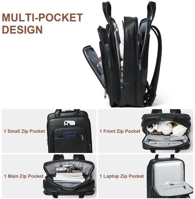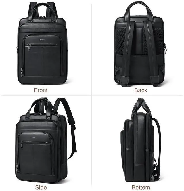Premium MaterialLaptop backpacks made of soft and durable faux leather and fabric lining,thick shoulder straps,unique leather handles,no-slip zippers.For this business backpack for men&women,we have designed a safety pad for it.The dedicated laptop compartment with cushioned cotton sewn around, it maximizes physical protection of your electronic devices