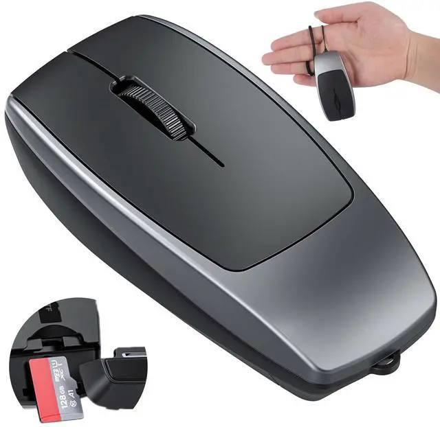 1: Open the TF card slot cover at the end of the wireless mini mouse.