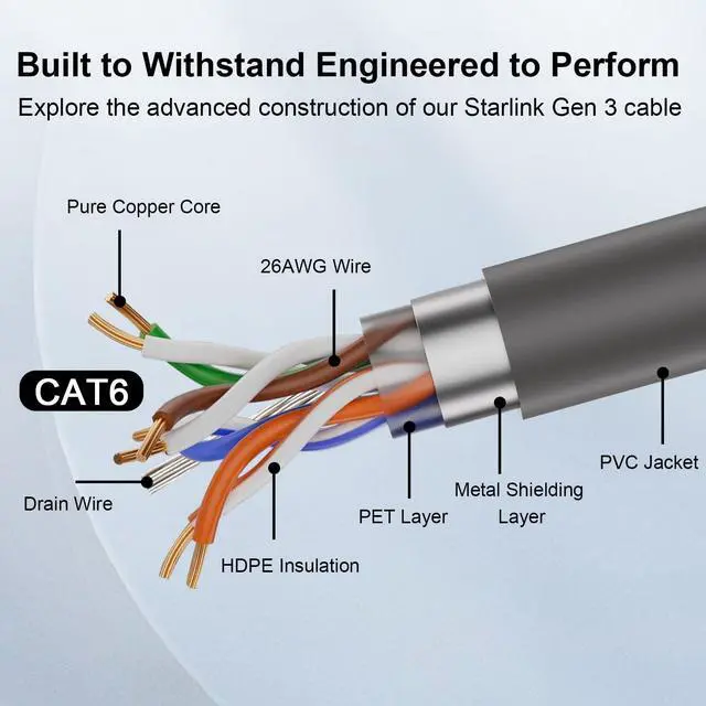XRDS -RF Starlink Gen 3 Ethernet Cable 75FT, 26AWG Pure Copper Core Starlink Cable CAT6 Network Cable with Double Shielding Compatible with Starlink Gen 3 Dish and Gen 3 Router