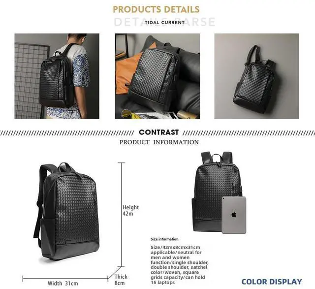 SIZE: This mens black PU leather backpack measures 16.5" * 12.5" * 6" (42cm * 32cm * 15cm) with a 17-liter capacity, perfect for daily commuting, work, travel, and college use. Whether you need to carry office supplies, books, or travel essentials, this high-capacity backpack keeps everything organized and within reach