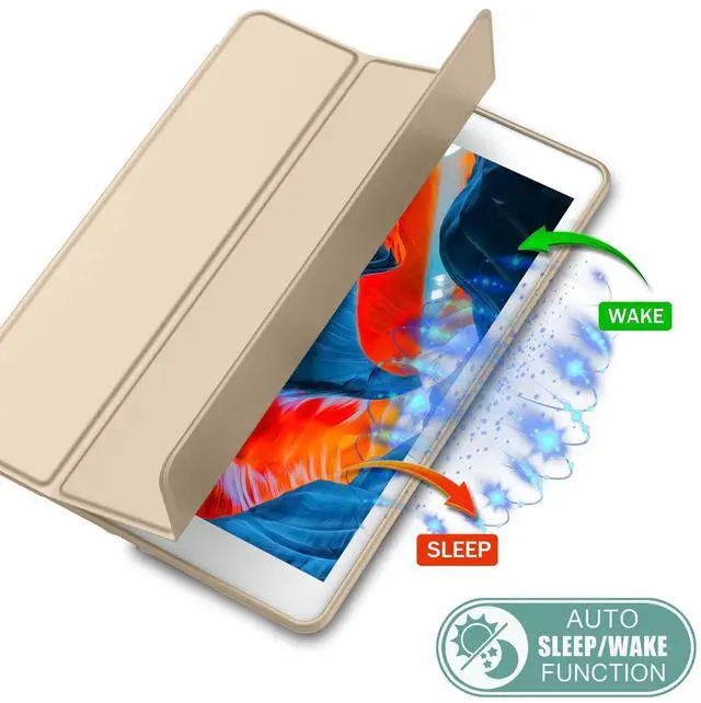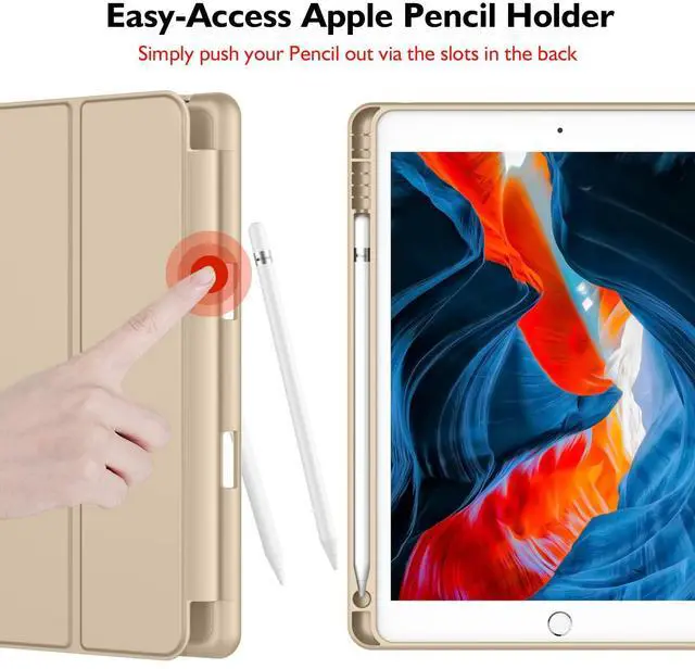 iMieet iPad 9th Generation Case 2021/iPad 8th Generation Case 2020 10.2 Inch with Pencil Holder, iPad 7th Gen 2019 Case with Soft Baby Skin Silicone Back, Auto Wake/Sleep Cover(Champagne Gold)