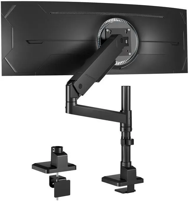 Clear Desktop Space: monTEK ultrawide monitor arm features a compact, low-profile base and elevated arm design, lifting your screen off the surface to free up valuable desk space. The single monitor arm also f
