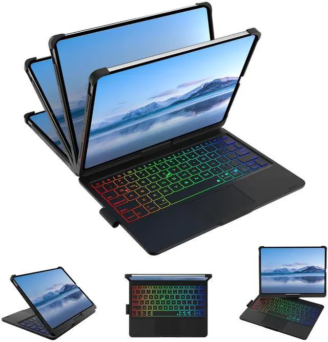 Mollenmell TouchPad Keyboard Case for iPad 10th Generation&iPad 11th(A16,2025),iPad Air 11M3,M2/iPad Pro 11 inch Keyboard360°Swivel,7 Use Modes,Rainbow Backlight (Black)