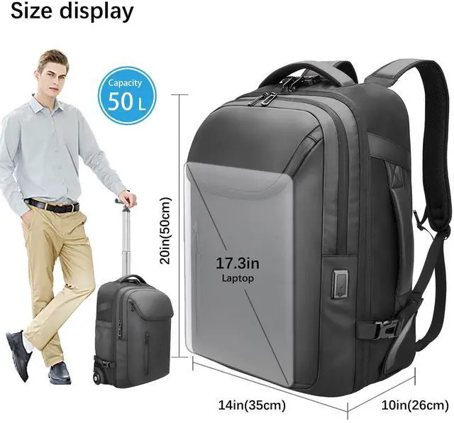 RoyalAnt Rolling Backpack,50L Travel Backpack with Wheels,17.3inch Laptop Backpack with USB Port,TSA Carry On Anti Theft Backpack for Business Work Airplanes,Large Backpack for Men Women,Black