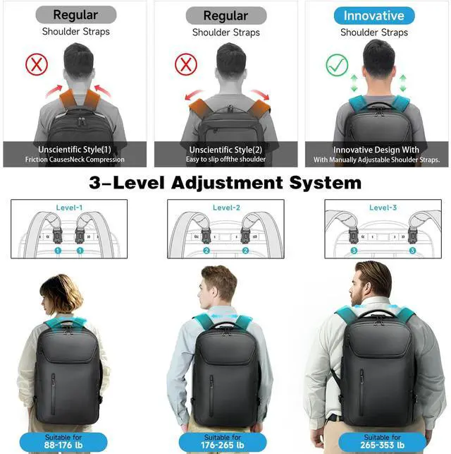 Ergonomic 3-Level Adjustable StrapsThe RoyalAnt travel backpack for men prioritizes comfort with removable, breathable, cushioned shoulder straps that feature a 3-level adjustment system for ergonomic support. This backpack on wheels also includes breathable shoulder straps, a supportive 3D back pad, and a waist belt to evenly distribute weight.