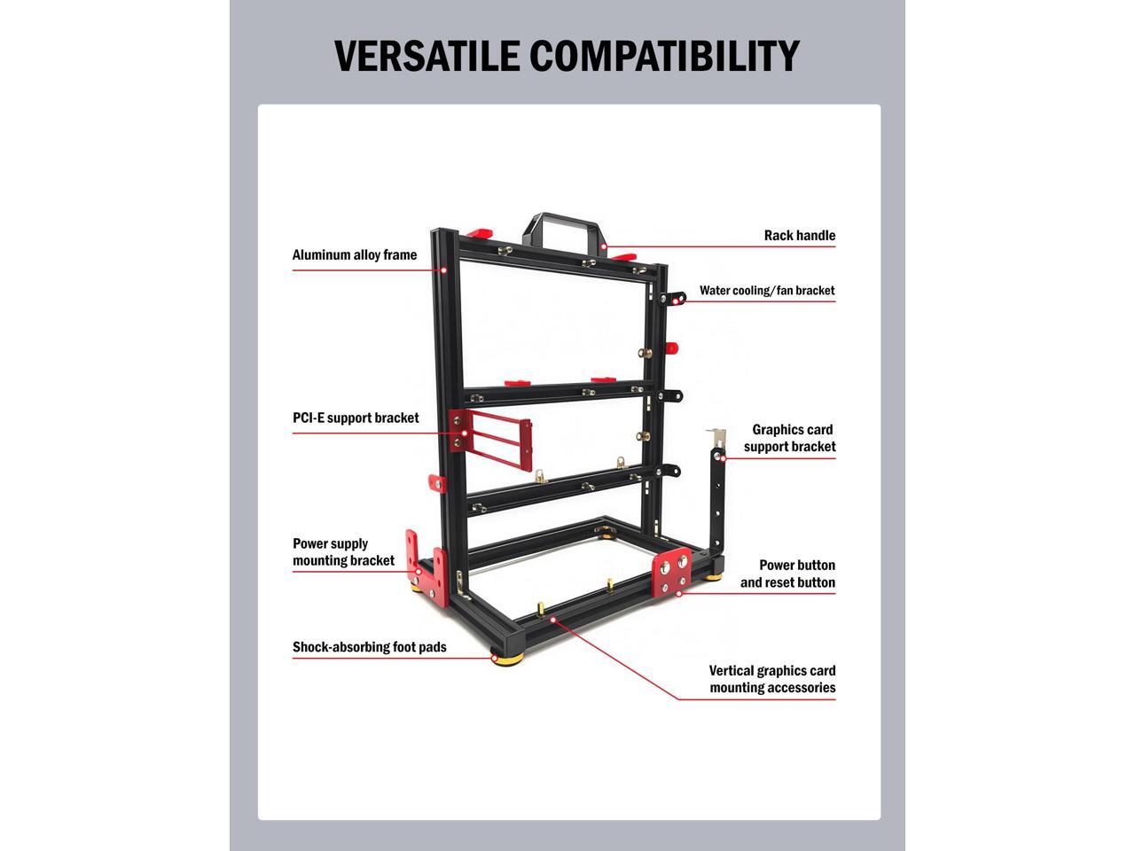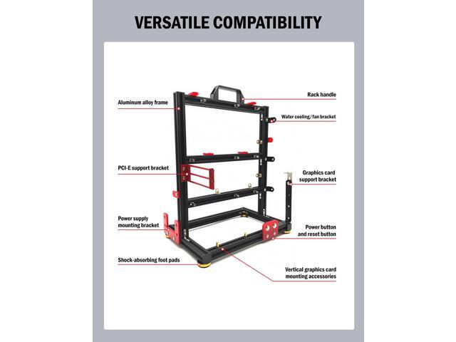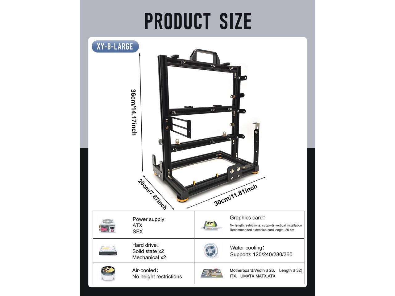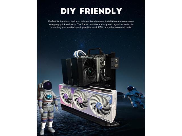 - DIY Friendly: Perfect for hands-on builders, this test bench makes installation and component swapping quick and easy. The frame provides a sturdy and organized setup for mounting your motherboard, graphics card, PSU, and other essential parts