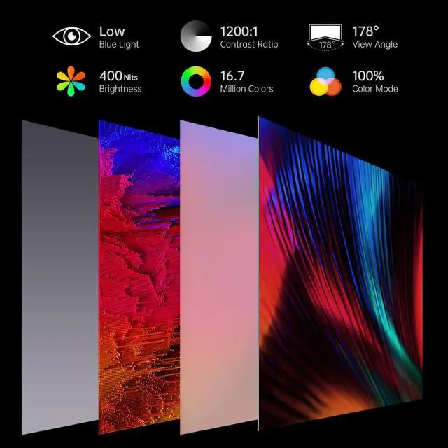 Extraordinary Detail Vision: Compared to others, the monitor with wide color gamut - 100% RGBhigh brightness - 400 nits, high contrast ratio - 1200:1 and wider viewing angle - 178°, presents you with vivid images, clear motion and details. Compared to sRGB, Adobe RGB offers a wider color space, accurately reproduced on the screen for professional photo editing and image viewing,enhancing your watching experience.