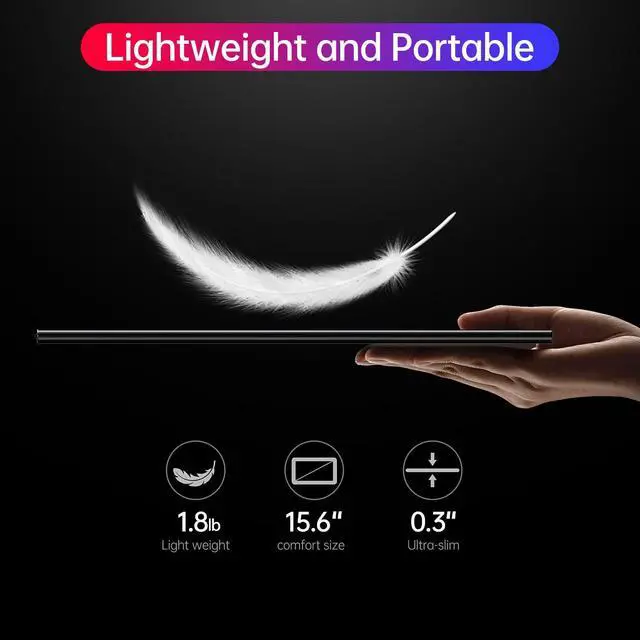 4K Ultra HD Portable Monitor- Portable monitor for laptop equipped with 4K-3840*2160 Ultra HD resolution with 4 times more pixels than FHD, the 15.6-inch IPS panel delivers superior, crisp, immersive images with incredible detail and clarity. 60hz refresh rate and HDR technology for unparalleled contrast and accurate reproduction, perfect for gamers, photographers, content creators, and multitaskers.