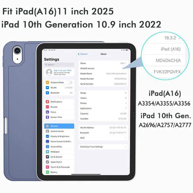 Designed for iPad (A16) 11-inch 2025 (Model: A3354, A3355, A3356),iPad 10th generation 10.9-inch 2022 (Model: A2696, A2757, A2777). Note: It will not be compatible other model. Please check your iPad model before purchase.