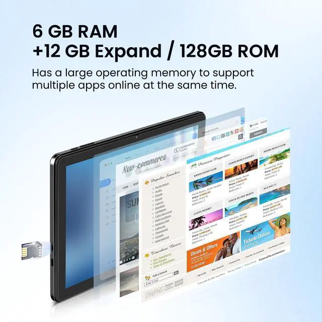 Featuring 18GB RAM (6+12GB expandable), 128GB ROM, powerful CPU, huge storage, 8.0 HD camera on the rear and 2MP camera on the front. Built-in GPS, FM radio, dual speakers, 3.5mm headphone jack. Ideal for reading, taking photos, videos, music and more.