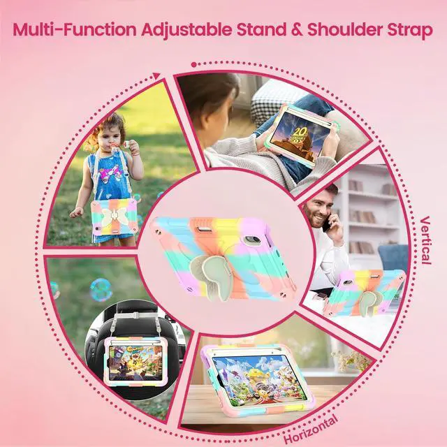 Butterfly Kickstand / Precise Cutouts - Butterfly Case for iPad 8.3-inch has a built-in sturdy butterfly kickstand on the back, the double kickstand is designed for multi-angle watching. Fits every occasion, when doing yoga, cooking, climbing, watching, working, trips, etc. iPad mini 6 cover with accurate cutouts ensure clear full access to all buttons, ports, sensors, speakers and cameras without removing the tablet case
