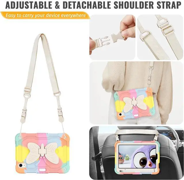 Built in Pencil Holder / Detachable and Adjustable Carrying Shoulder Strap - iPad mini 7th/6th generation 8.3 inch case with pencil holder keeps your pencil within your reach anytime, p