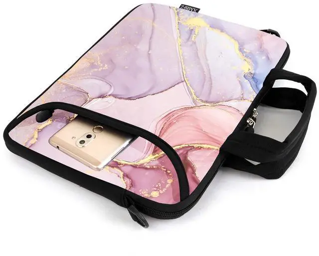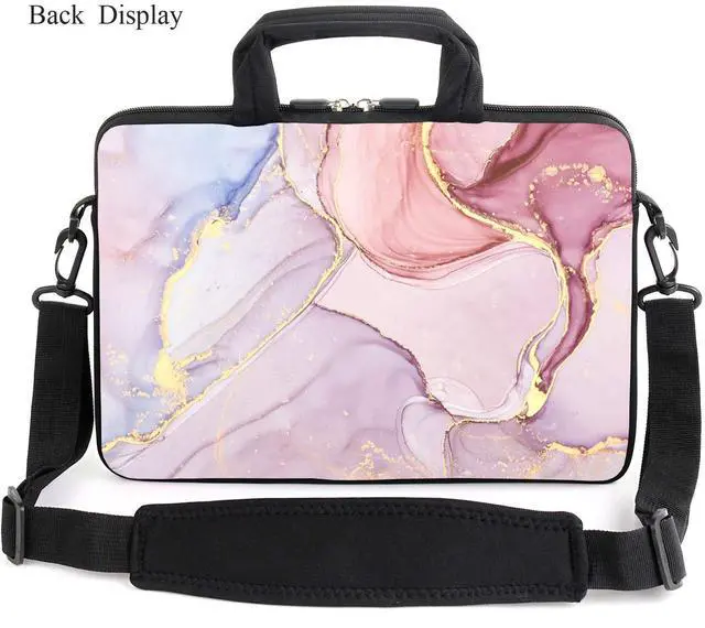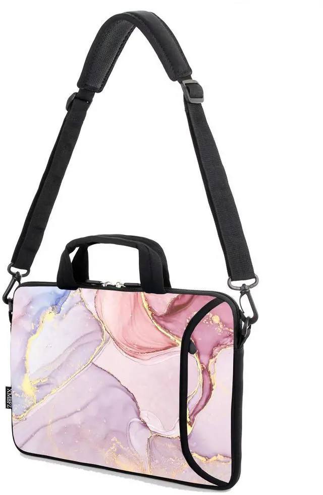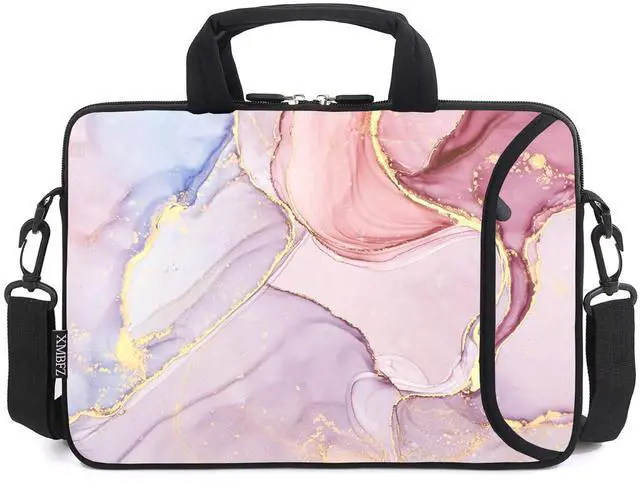 XMBFZ 15.6" laptop sleeve laptop bag chromebook case adjustable shoulder strap with handle accessory pocket (Pink marble)
