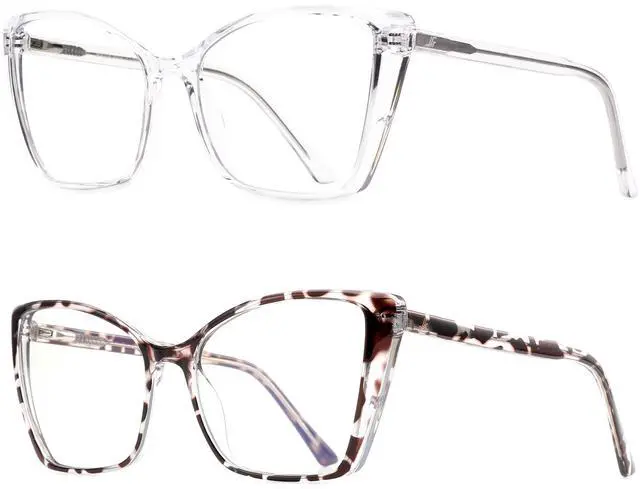 JFXQDR 2 Pack Blue Light Blocking Glasses for Women, Oversized Trendy Cat Eye Computer Gaming Glasses Anti Glare & UV Glare RF6204 (Clear + Leopard Cateye Frame)