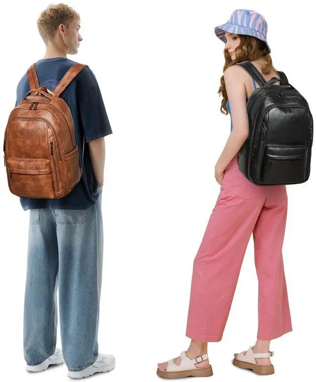 EASY TO CARRY: Travel light and stress-free. Adjustable shoulder straps distribute weight evenly and reduce fatigue during long walks or crowded commutes. Crafted from sturdy and lightweight PU leather that maintains its shape even when fully packed. The reinforced double top