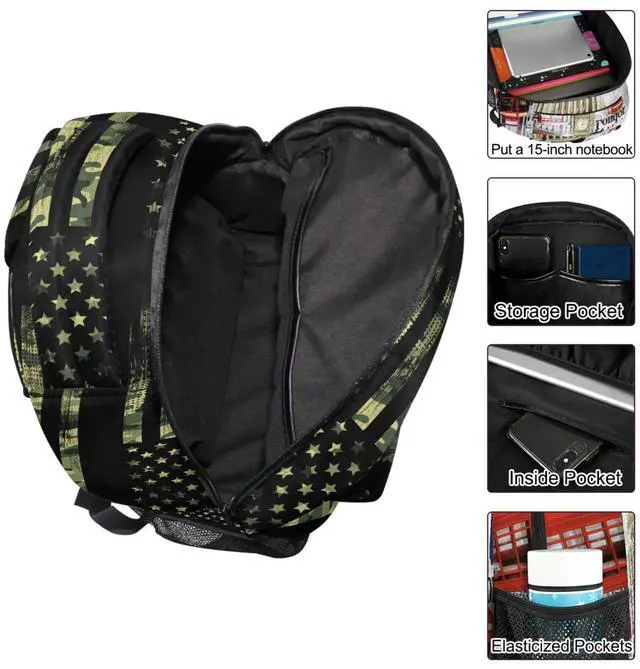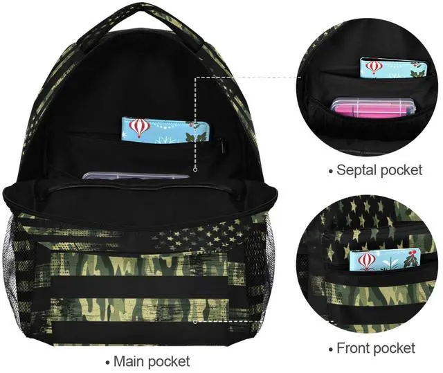 Roomy main compartment: the main compartments offer a separated space for your laptop, iPad, charger, book, pen, pencil bag, calculator, clothes, ect. Easy find what you want. Two small interior pockets and one zipper pockets. Fit in your phone, wallet or any other equipment. It's anti theft and reliable, protecting wallet and other items inside from thief and offering a private space. One front pocket can carry pens or other little school supplies.