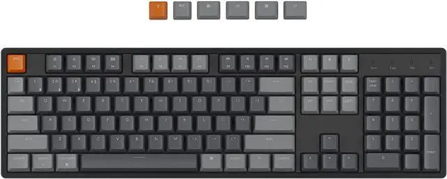 Keychron K10 is a full size layout (104-key) White backlight Bluetooth mechanical keyboard. The K10 is crafted to maximize your workspace and enhance productivity. Aluminum frame.