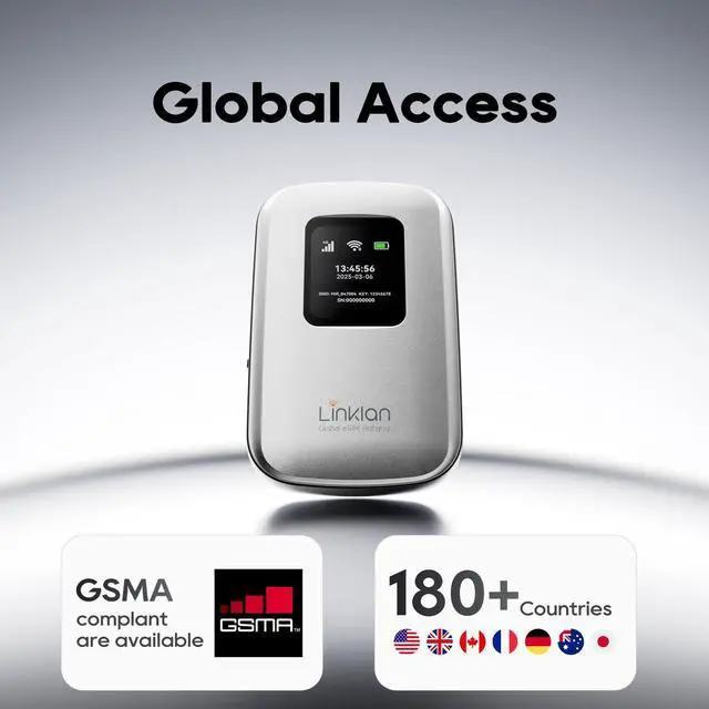 Ultra-Fast 4G LTE with Global Coverage The Linklan eSIM mobile hotspot offers 4G LTE Cat 6 connectivity, supporting 30+ global frequency bands. Enjoy seamless roaming in over 180 countries and regions, making it ideal for international business travel and global journeys. With speeds up to 300Mbps via dual-band WiFi, it ensures smooth performance for business, video calls, and high-definition entertainment.