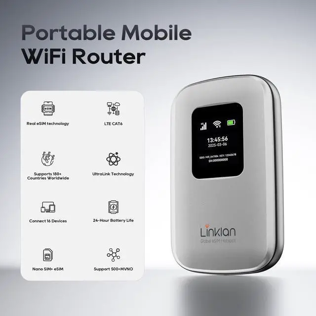 Long-Lasting Battery with Multi-Device SupportThe Linklan eSIM portable mobile MIFI is equipped with a powerful 5000mAh battery