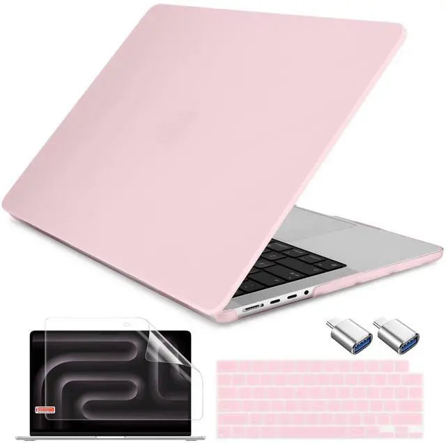 DONGKE Compatible with New MacBook Pro 16 inch Case 2024 [M4 Pro / M4 Max Chip] Model A3403 A3186, Protective Plastic Hard Shell & Keyboard Cover & Screen Film & Type C Adapter - Frosted Solid Pink