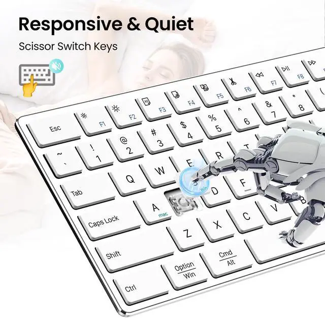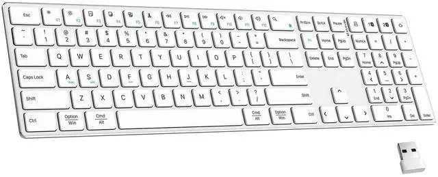 3 Modes Connect Up to Devices: TIETI metal keyboard offers two independent Bluetooth channels and one 2.4G wireless channel with dongle. The white keyboards support up to three devices simultaneously and easily switch between them by pressing Fn + Bluetooth button or Fn+ 2.4G dongle icon button.