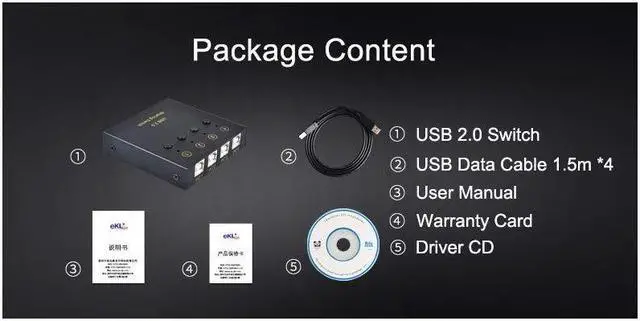 Ideal for sharing devices such as printer, scanner, mouse, keyboard, card reader, flash drive and other USB deivce between 4 computers;