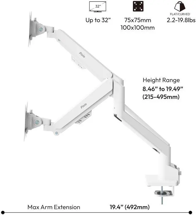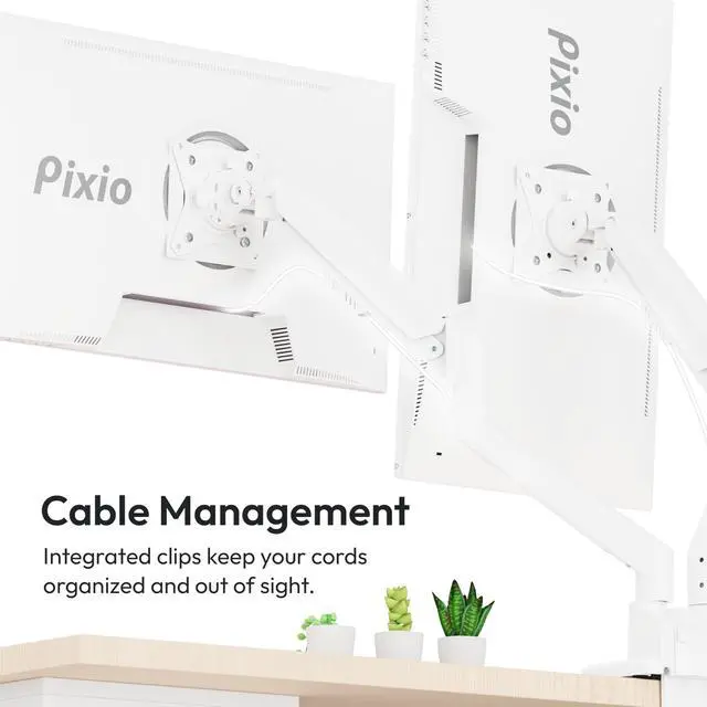Pixio PS1D Wave White Dual Monitor Arm Stand Desk Mount - Fits up to 32 inches Monitors and up to 19.8 lbs. VESA Compatibility and Integrated Cable Management