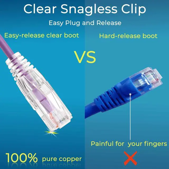 Clear Snagless ClipClear Snagless Clip of cat 6 ethernet cable 1 ft black make it easy to see the switch port and light. Also, easy release from port and save time for patching installation.