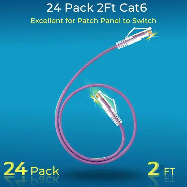 24 Pack24-pack of CAT6a patch cables with short length is excellent solution for connecting patch panel to switch and other various devices in high performance. Available in various colors and length of cable patch cords.
