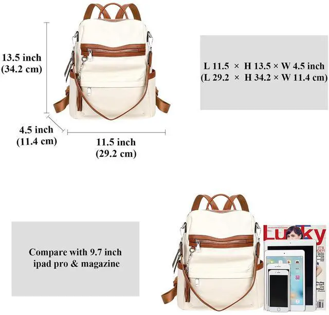 STRUCTURE & CAPACITY: This backpack has 2 zipper pockets and 1 main zipper pocket on the front and 2 open pockets on the side. Inside there are 1 zipper pockets and 2 small open pockets, large capacity, fit 12.9 inch iPad, and multiple compartments to organize your belongings.