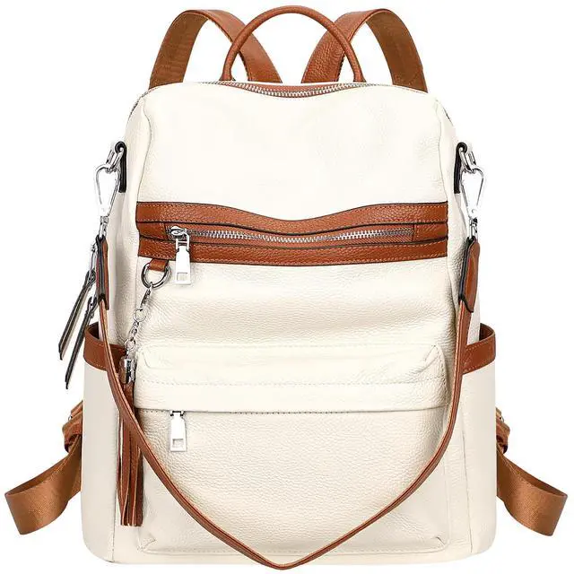 ALTOSY Genuine Leather Backpack Purse for Women Convertible Shoulder bag Soft Crossdody Bag with Laptop Compartment Large (S108 White/Brown)