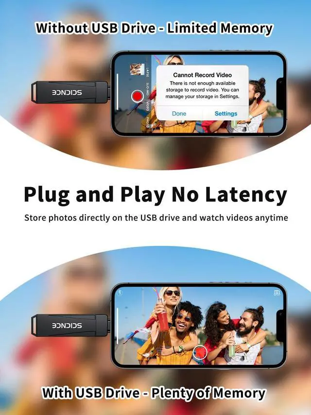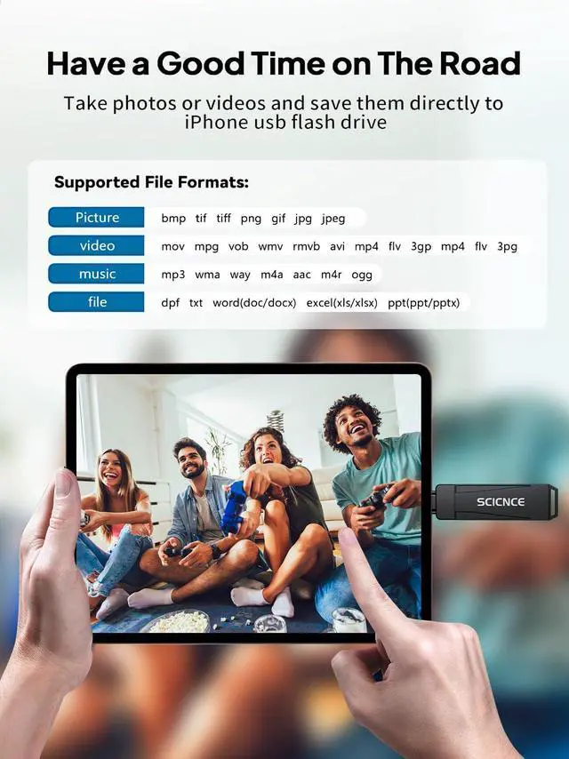 Plug and Play, No Application Required, Instantly Increases iPhone and iPad Memory SpaceIf you almost used up all space on your iPhone or iPad, this photo stick for iPhone helps to expand your memory at full storage with 256GB. And usb memory stick for photos is also a great partner for traveling photographers editing on iPad. Using this memory device for your iPhone, iPad or Computers,