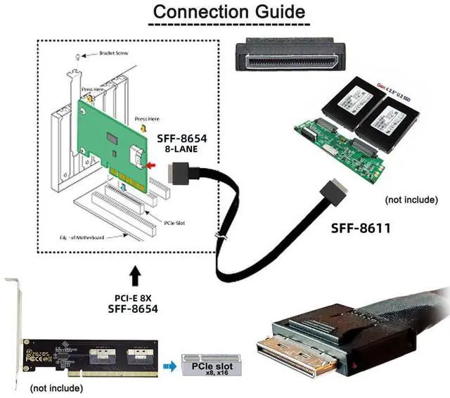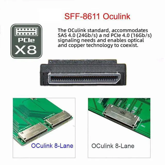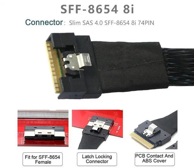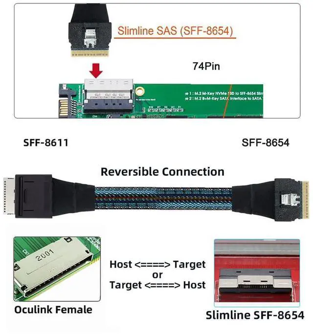 Also can work for a backplane with SFF-8611 socket to a controller with SFF-8654 socket.