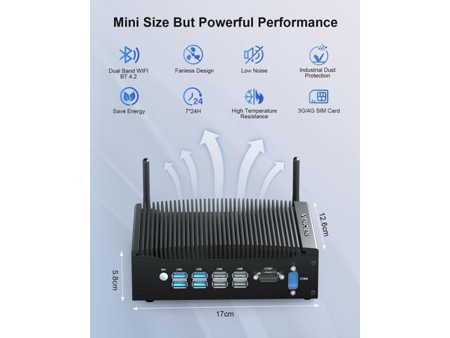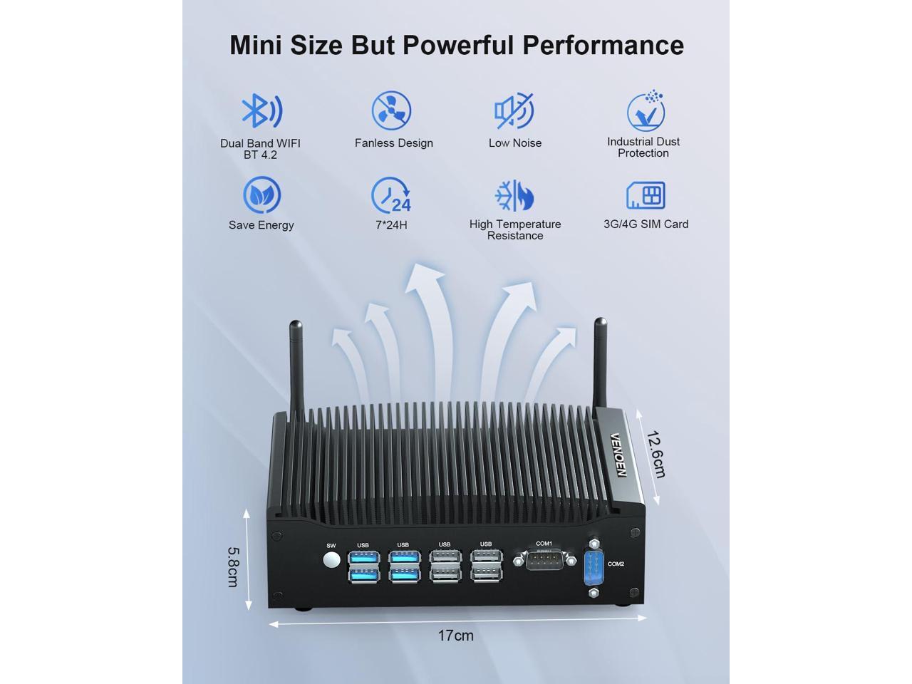 VENOEN Fanless Mini PC i5 Industrial Computer Core i5-8350U, 2* RS232 COM, Dual HD, 2* RJ45 LAN, WiFi, BT4.2, 4G SIM Slot, 16GB DDR4 512GB SSD, Industrial Mini PC Win 11pro, Office/Business PC, WOL
